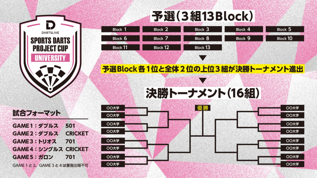 3/21(土)に開催されるスポーツダーツプロジェクトカップ2026 全国大学ダーツ団体戦の出場校と当日の予選ブロックの組み合わせが決定しました!